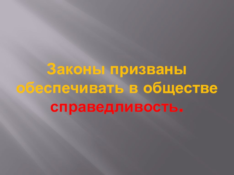 Слайд 18Законы призваны обеспечивать в обществе справедливость.