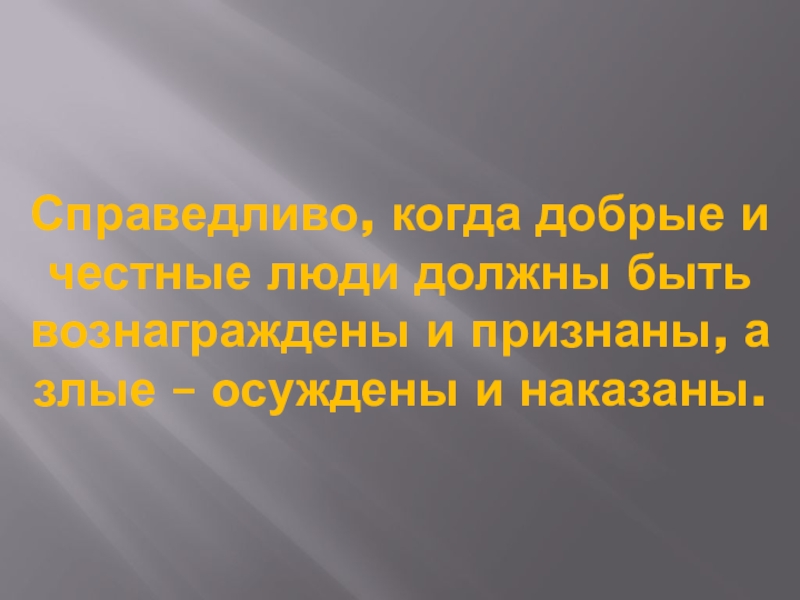 Слайд 23Справедливо, когда добрые и честные люди должны быть вознаграждены и признаны,