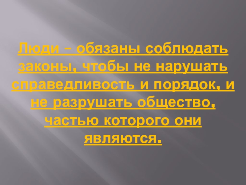 Люди – обязаны соблюдать законы, чтобы не нарушать справедливость и порядок, и не разрушать общество, частью которого