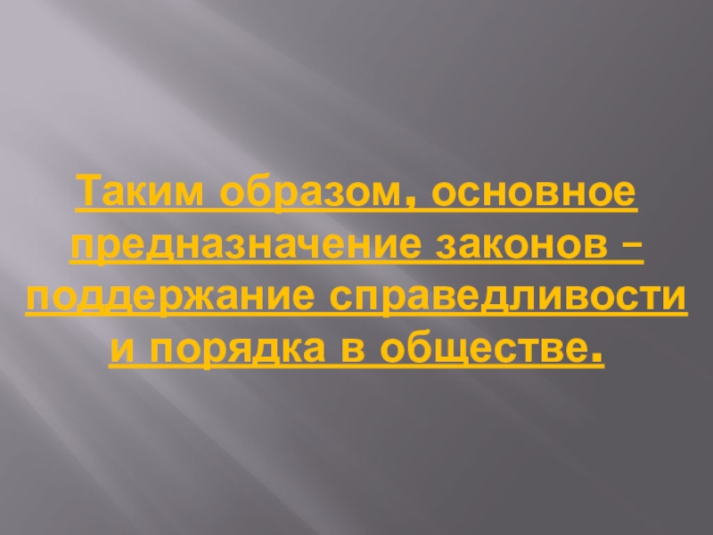 Слайд 25Таким образом, основное предназначение законов – поддержание справедливости и порядка в