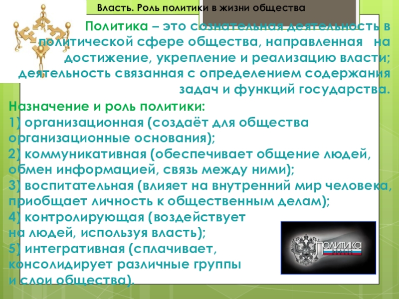 Власть. Роль политики в жизни общества