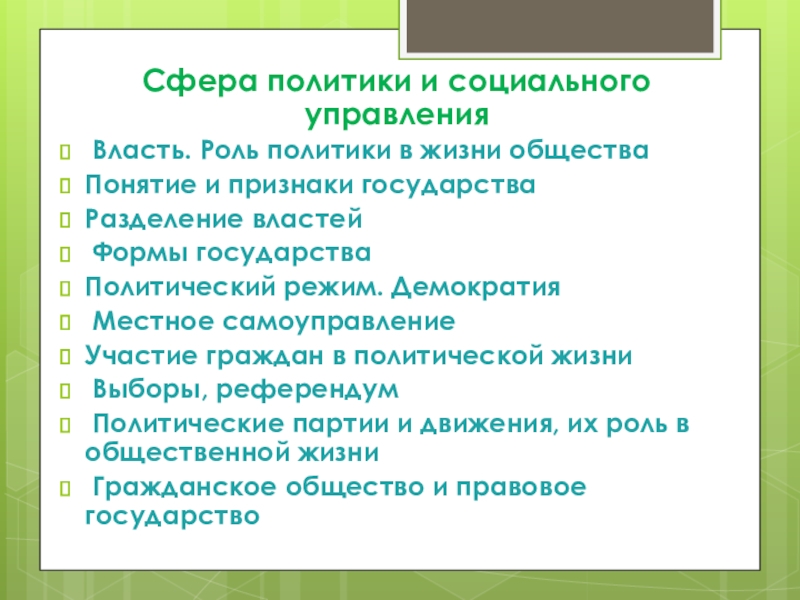 Тема: Сфера политики и социального управления