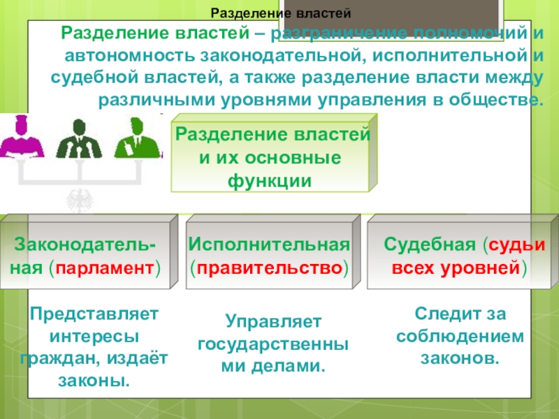 Разделение властей – разграничение полномочий и автономность законодательной, исполнительной и