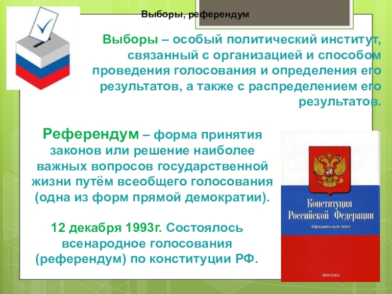 Слайд 26Выборы, референдум