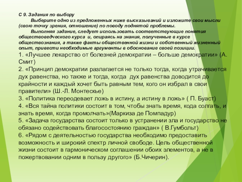 Слайд 42С 9. Задания по выбору