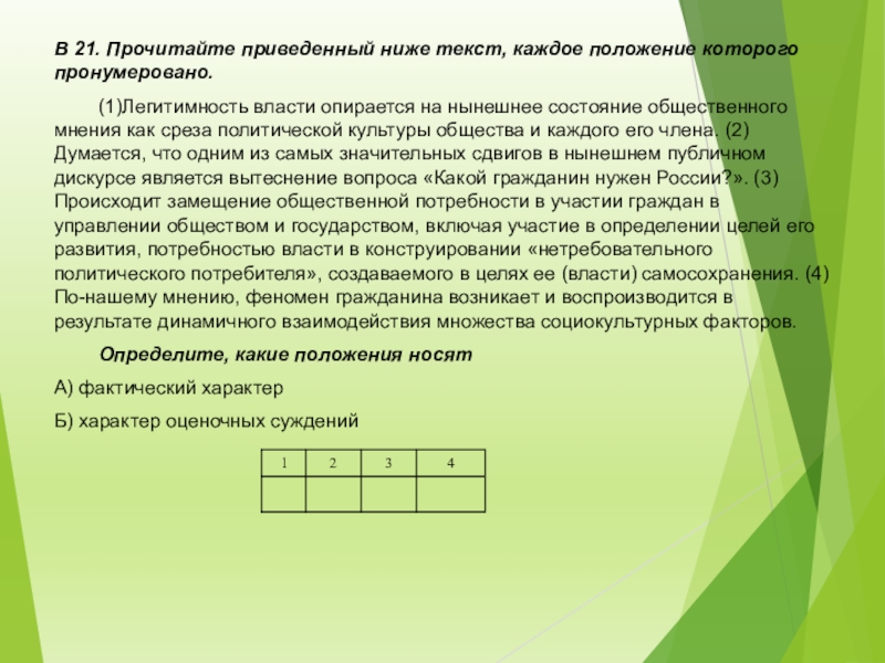 Слайд 33В 21. Прочитайте приведенный ниже текст, каждое положение которого пронумеровано.