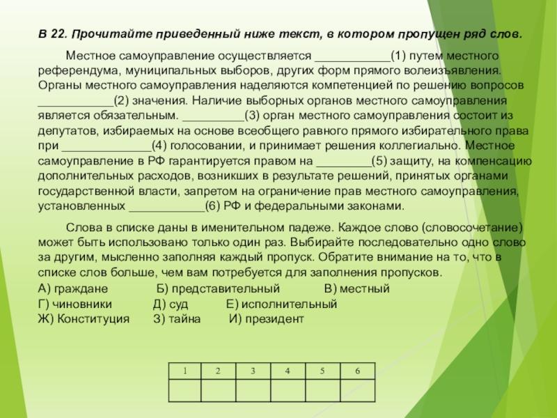Слайд 34В 22. Прочитайте приведенный ниже текст, в котором пропущен ряд слов.