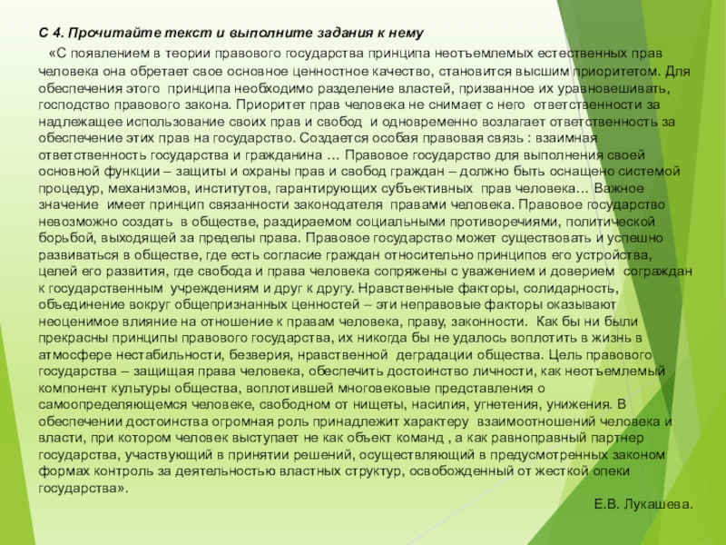 Слайд 414. Автор утверждает, что приоритетным принципом правового государства являются естественные права