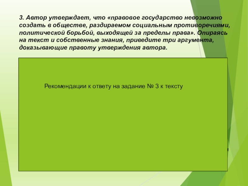 Слайд 403. Автор утверждает, что «правовое государство невозможно создать в обществе, раздираемом