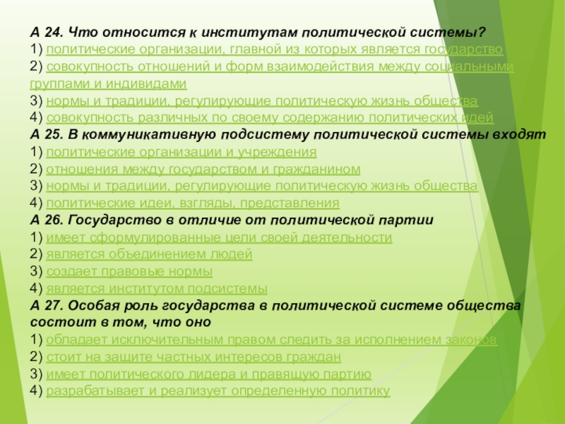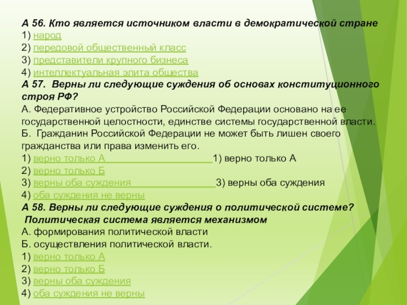 Слайд 4А 8. К отличительным признакам правового государства относится