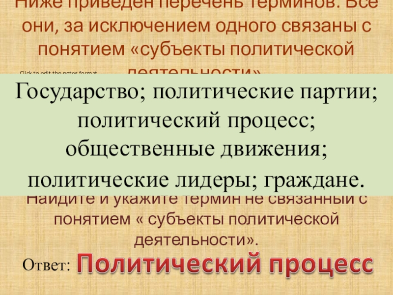 Найдите и укажите термин не связанный с понятием « субъекты политической деятельности».