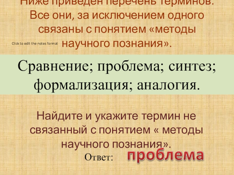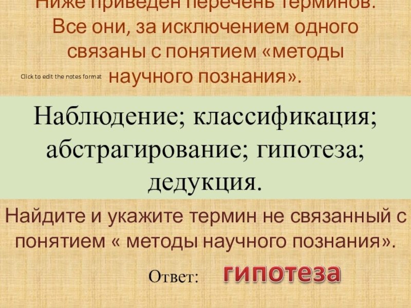 Найдите и укажите термин не связанный с понятием « методы научного познания».