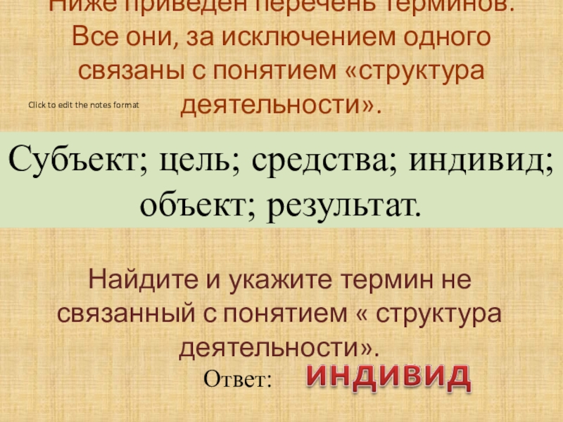 Найдите и укажите термин не связанный с понятием « структура деятельности».