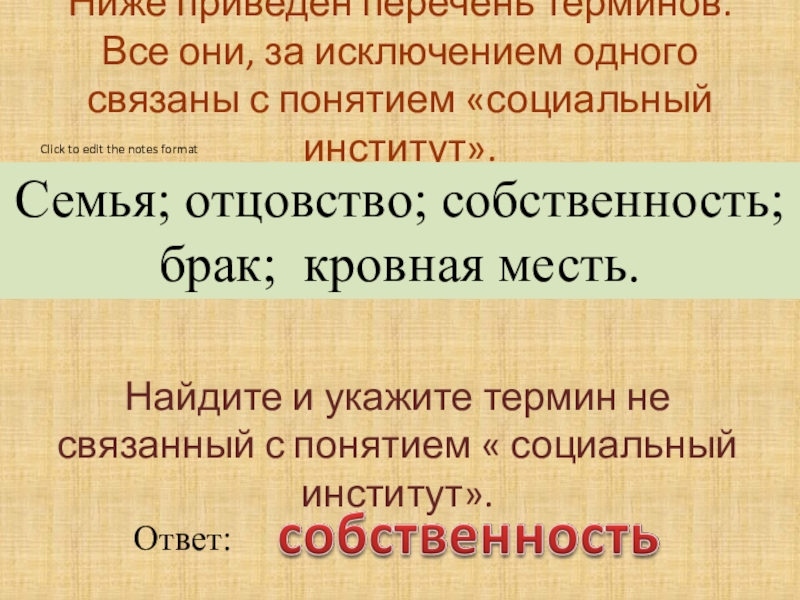 Найдите и укажите термин не связанный с понятием « социальный институт».