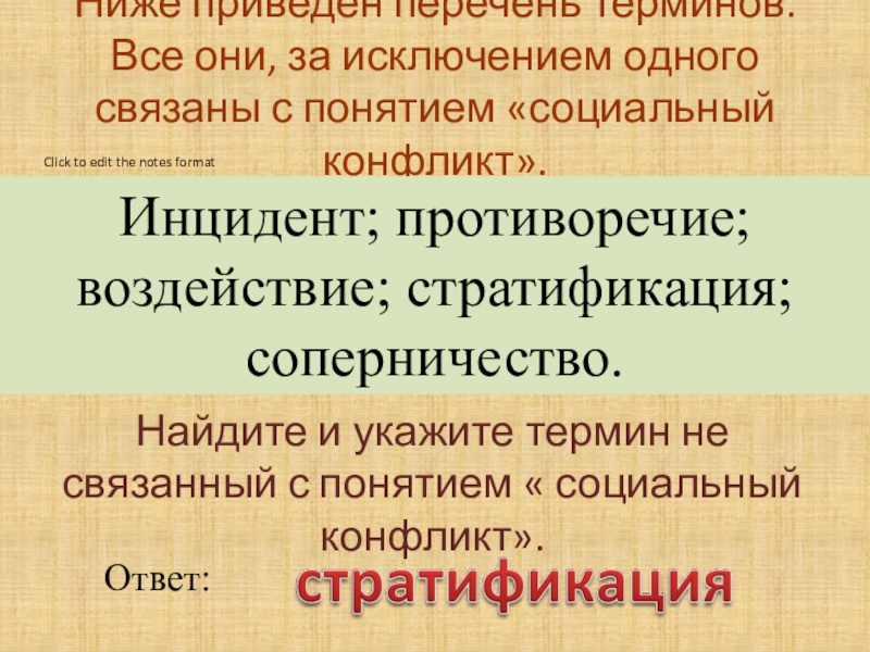 Найдите и укажите термин не связанный с понятием « социальный конфликт».