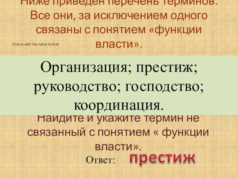Найдите и укажите термин не связанный с понятием « функции власти».