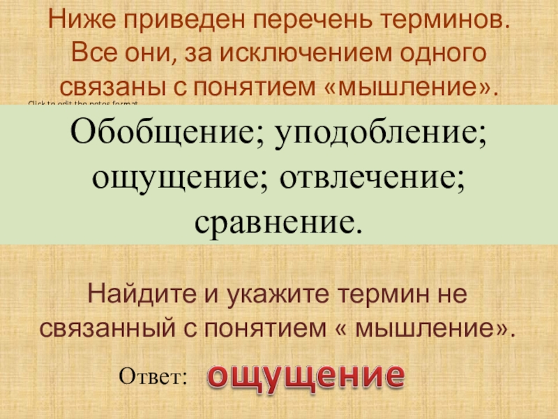 Обобщение; уподобление; ощущение; отвлечение; сравнение.