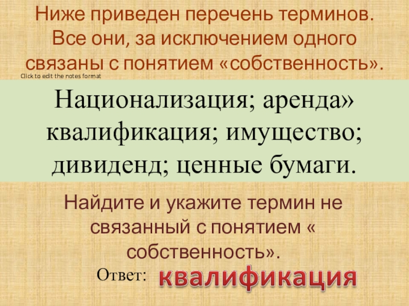 Найдите и укажите термин не связанный с понятием « субъект собственности».