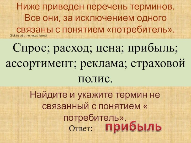 Найдите и укажите термин не связанный с понятием « потребитель».