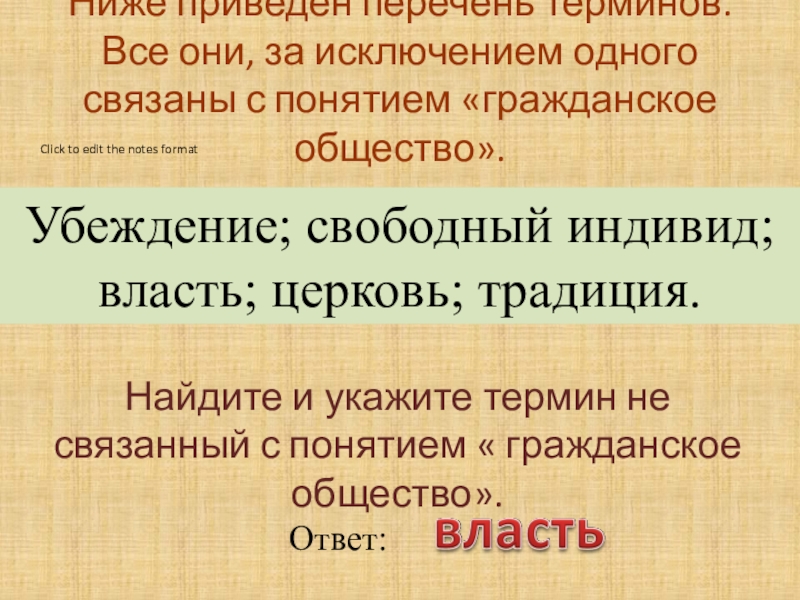 Найдите и укажите термин не связанный с понятием « гражданское общество».