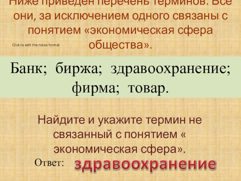 Найдите и укажите термин не связанный с понятием « экономическая сфера».