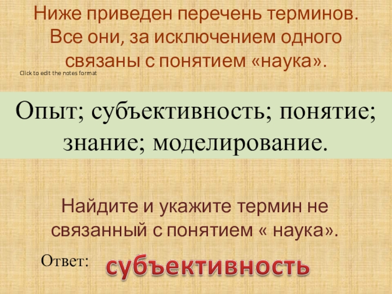 Найдите и укажите термин не связанный с понятием « научное познание».