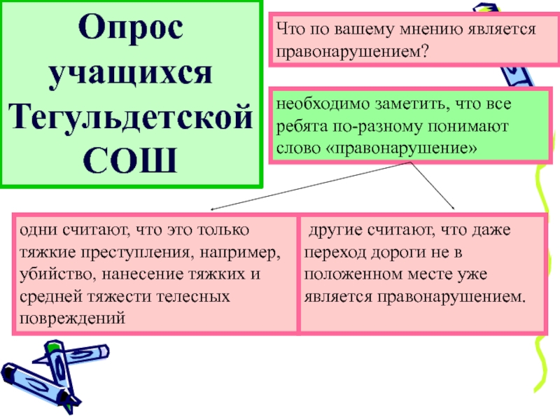 По состоянию на март 2017 года на учёте в Тегульдете состоят 16 человек: 11 – на учёте в КДН и ПДН и 5 человек состоят на внутришкольном контроле.