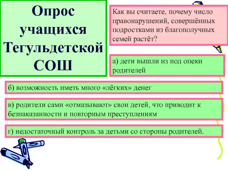 г) недостаточный контроль за детьми со стороны родителей.