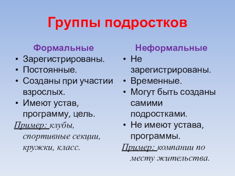 Могут быть созданы самими подростками.