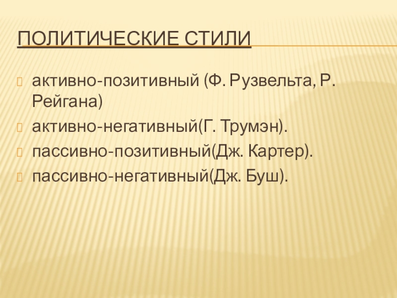 активно-позитивный (Ф. Рузвельта, Р. Рейгана)