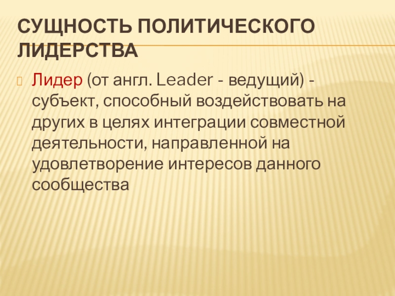 воздействовать на других в целях интеграции совместной деятельности, направленной на удовлетворение интересов данного сообщества