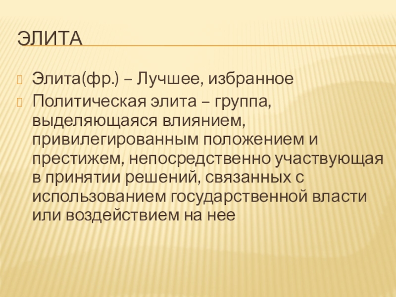 Политическая элита – группа, выделяющаяся влиянием, привилегированным