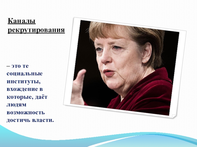 Слайд 10Система рекрутирования - это механизм формирования и воспроизводства элиты, которая включает