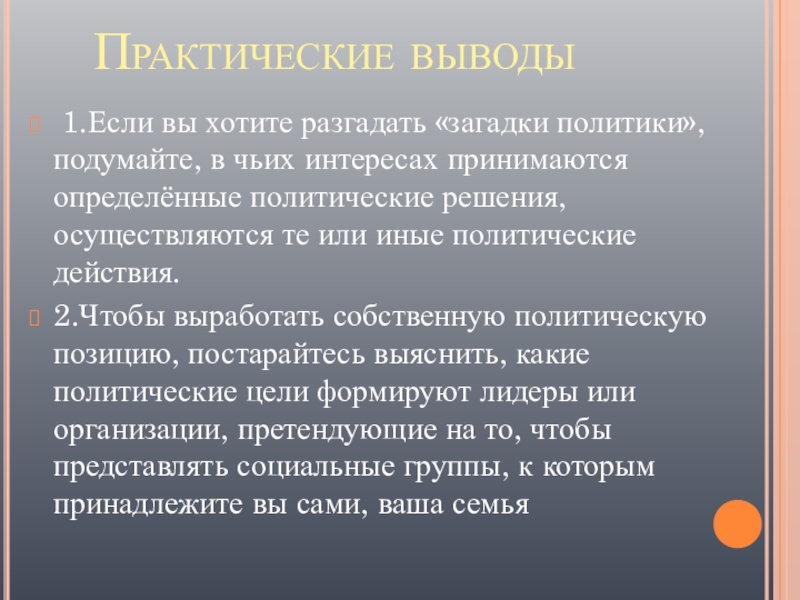 1.Если вы хотите разгадать «загадки политики», подумайте,