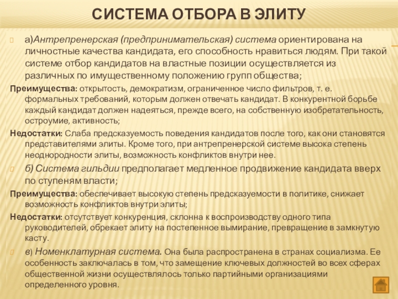 его способность нравиться людям. При такой системе отбор кандидатов на властные позиции осуществляется из различных по имущественному положению групп общества;