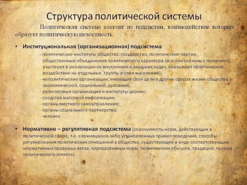 Презентация по обществознанию на тему Политическая система общества Обществознание