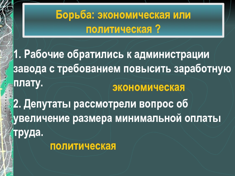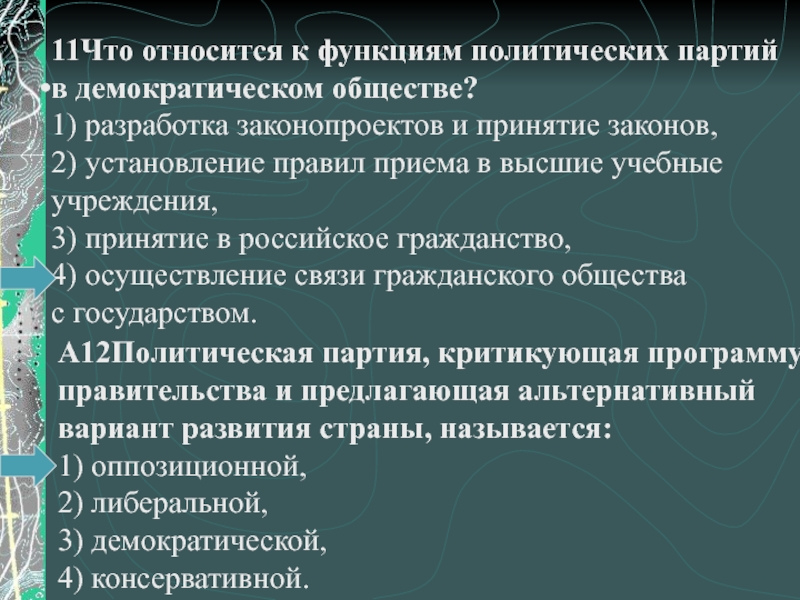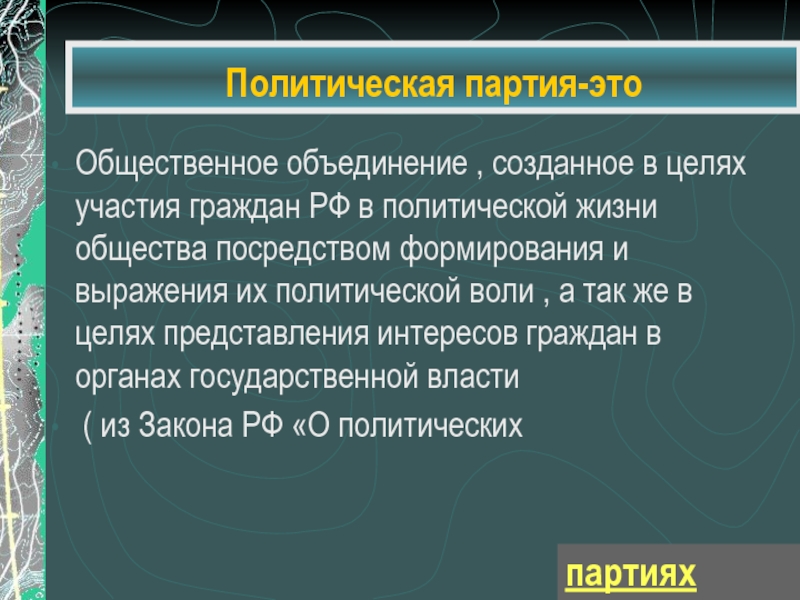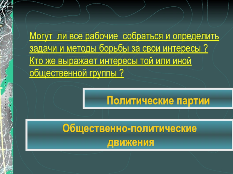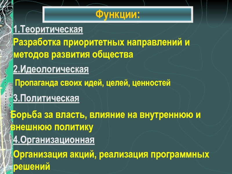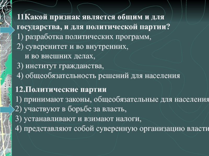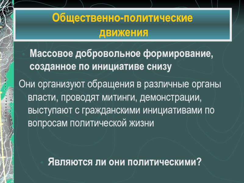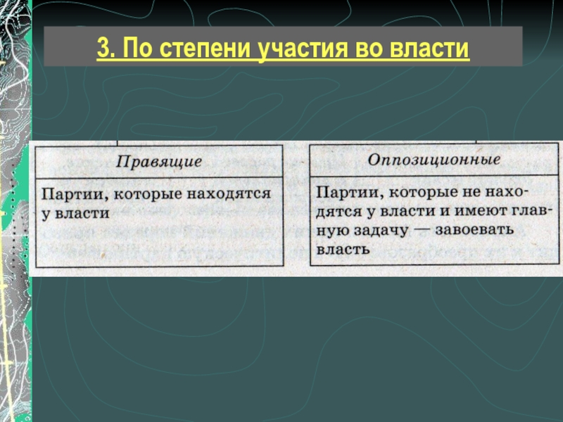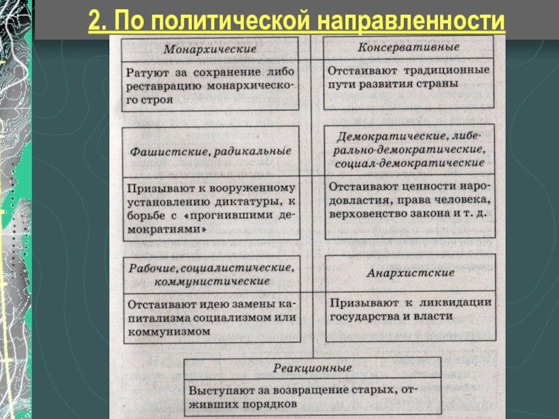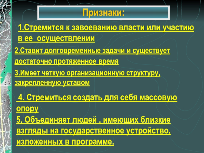 1.Стремится к завоеванию власти или участию в ее осуществлении