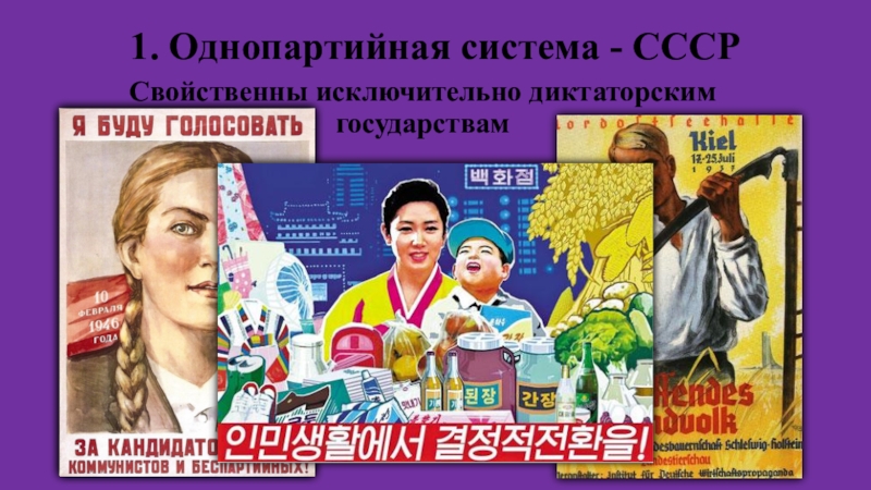 1. Однопартийная система - СССРСвойственны исключительно диктаторским государствам