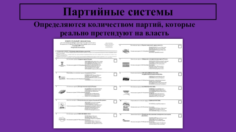 Партийные системыОпределяются количеством партий, которые реально претендуют на власть