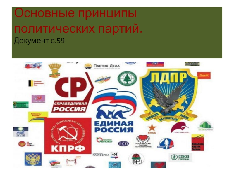 Слайд 8Основные принципы политических партий. Документ с.59