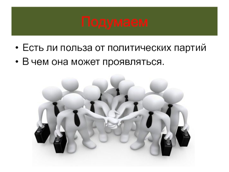 ПодумаемЕсть ли польза от политических партий В чем она может проявляться.
