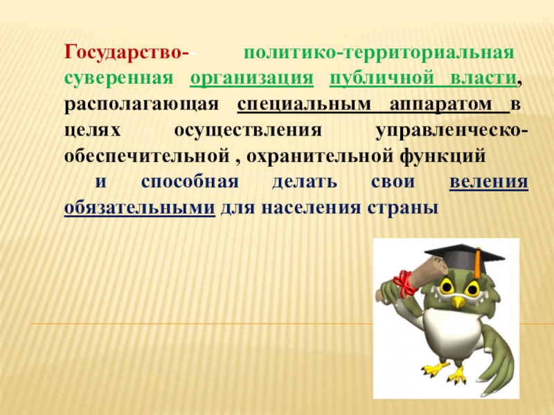 1)Форма государства; 2) форма правления; 3) государственно- территориальное устройство