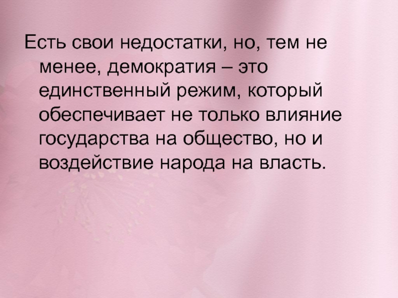 Есть свои недостатки, но, тем не менее, демократия – это единственный режим, который обеспечивает не только влияние