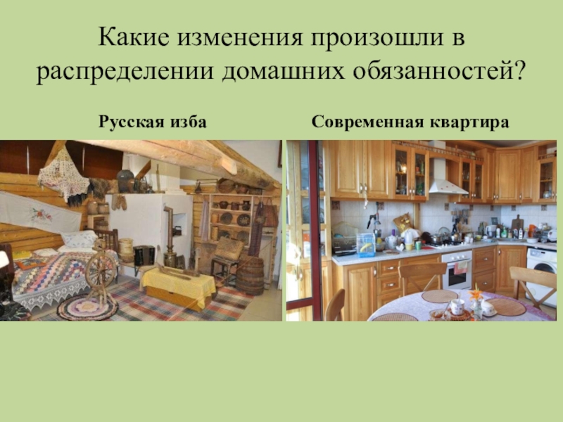 Какие изменения произошли в распределении домашних обязанностей?Русская избаСовременная квартира