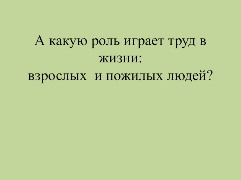 Слайд 13А какую роль играет труд в жизни: взрослых и пожилых людей?