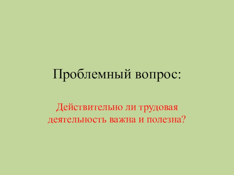 Проблемный вопрос:Действительно ли трудовая деятельность важна и полезна?