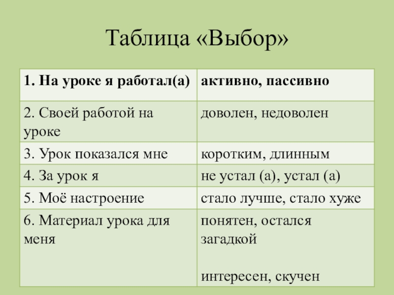 Слайд 15Таблица «Выбор»