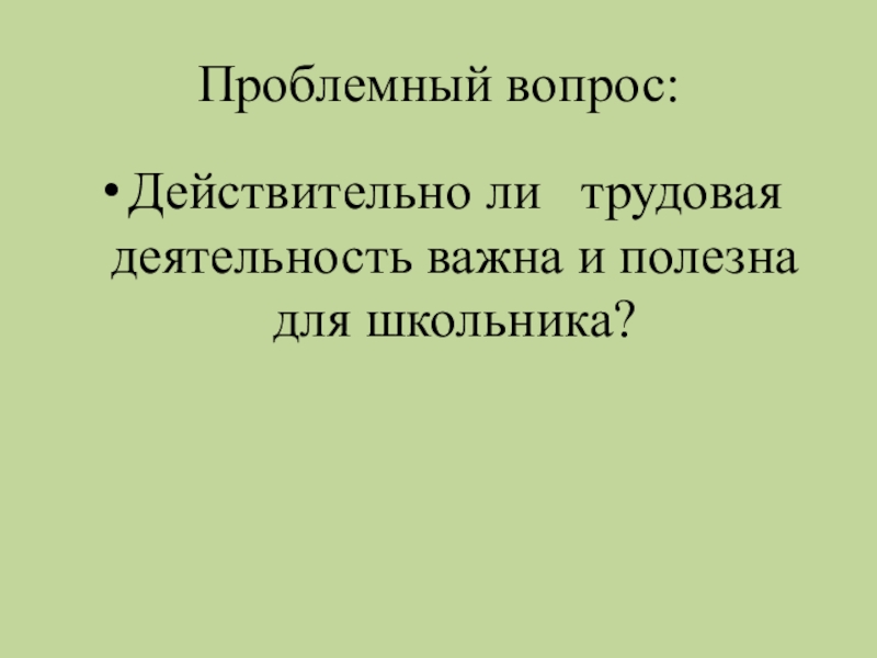 Проблемный вопрос:Действительно ли  трудовая деятельность важна и полезна для школьника?