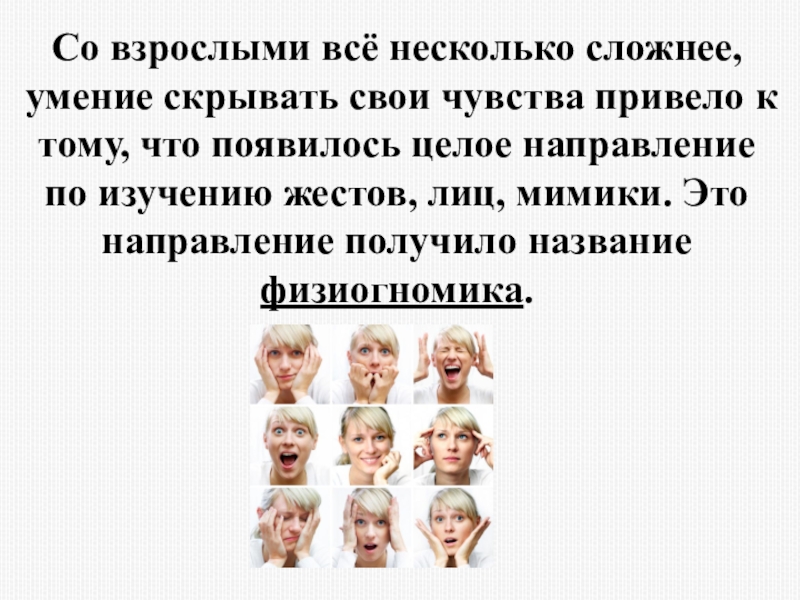 Слайд 31Со взрослыми всё несколько сложнее, умение скрывать свои чувства привело к