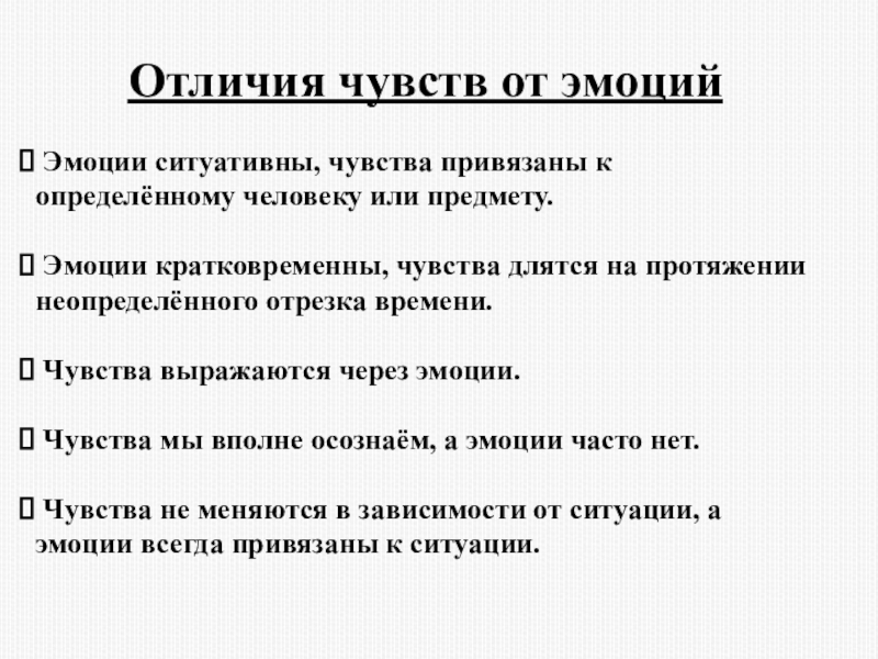 Эмоции ситуативны, чувства привязаны к определённому человеку